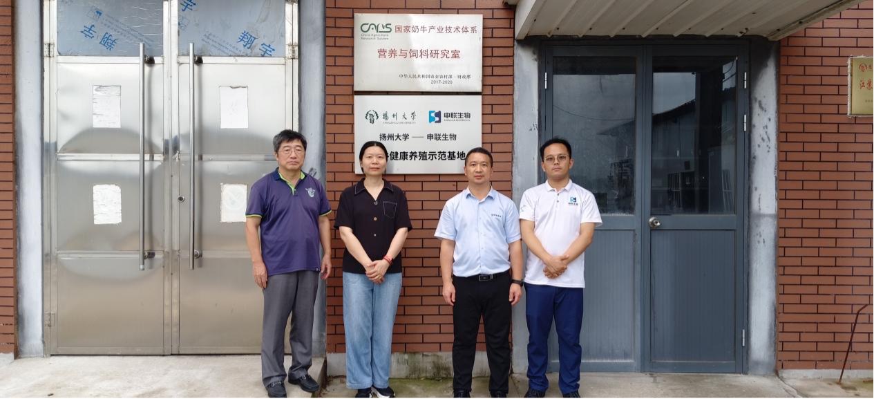 国家奶牛产业技术体系(扬大)团队赵国琦教授(左1)、林淼副教授(左2)、J9国际集团生物反刍业务大区销售总监林荣金(右2)、J9国际集团生物市场总监刘正旭(右1)参与现场活动