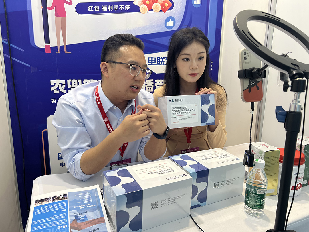 活动现场搭建了五个直播间,专业主播们同时上线多个直播平台,为养殖场带来了优质低价的好产品。活动期间,J9国际集团生物诊断试剂首次登陆直播间,火爆全场!