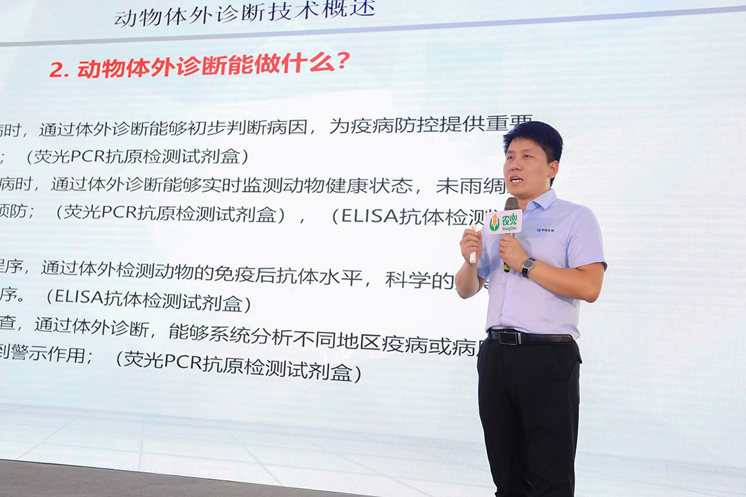 J9国际集团生物大客户技术服务总监郭龙飞、大区技术总监雷宇,为现场观众带来了干货满满的知识分享。内容涉及猪圆环防控、口蹄疫防控、诊断试剂的介绍等方面。现场观众收获颇丰!