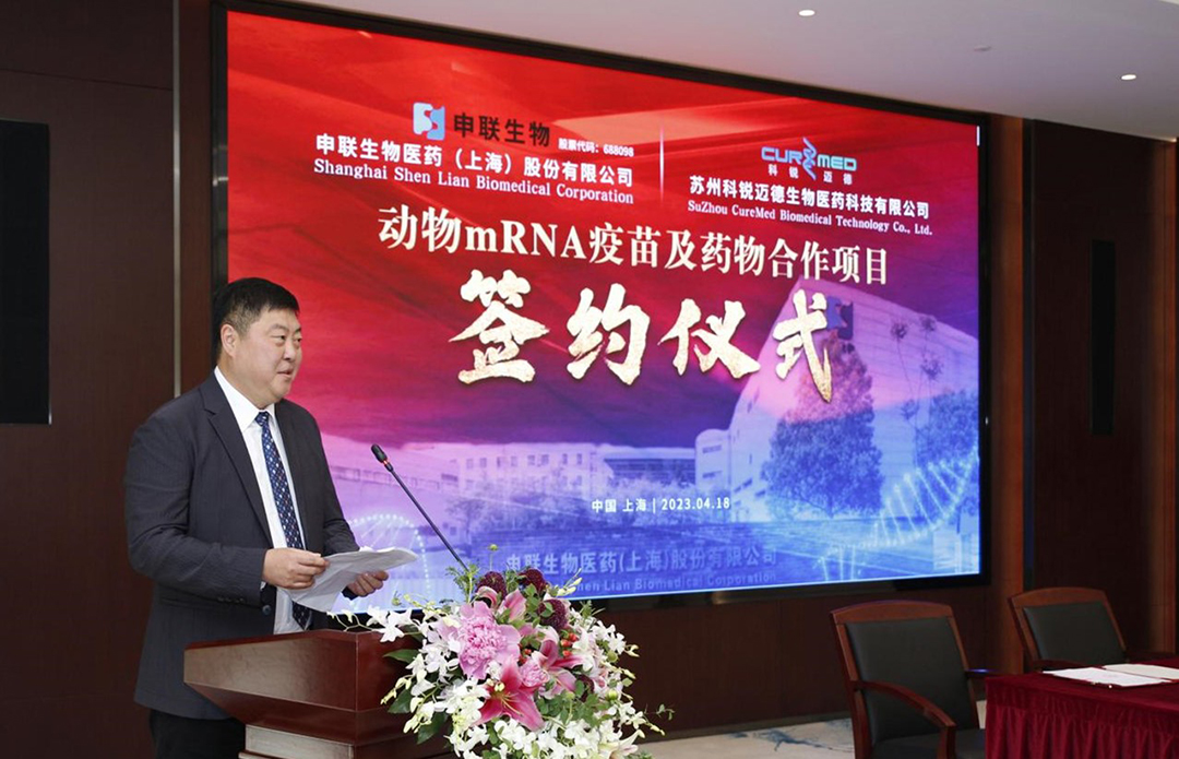 2023年4月18日,J9国际集团生物医药(上海)股份有限公司与苏州科锐迈德生物医药科技有限公司在上海紫竹高新区举行“动物mRNA疫苗及药物合作项目”签约仪式。上海紫竹高新区管委会副主任、上海紫竹高新区(集团)有限公司副总经理夏光,招商总监任曼,J9国际集团生物董事长聂东升,科锐迈德董事长刘毅翔及双方项目相关核心人员出席了仪式。