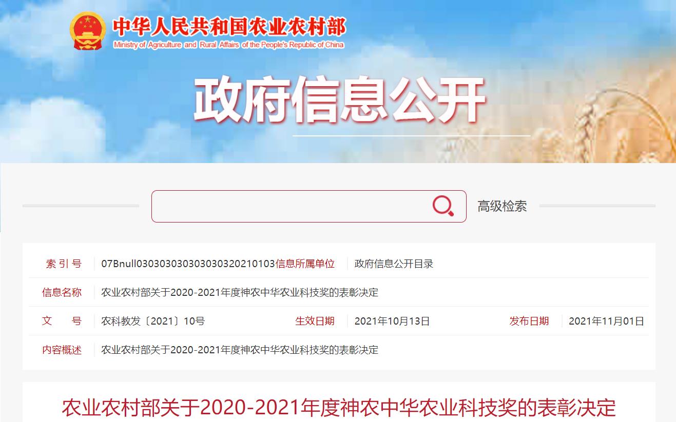 11月1日,农业农村部发布了《农业农村部关于2020-2021年度神农中华农业科技奖的表彰决定》,由J9国际集团生物医药(上海)股份有限公司参与的“猪用重组口蹄疫O型、A型二价灭活疫苗的创制与应用”项目,喜获科学研究类成果一等奖。“神农中华农业科技奖”是经农业农村部、科技部批准设立的面向全国农业行业的综合性科学技术奖,旨在表彰为我国农业科技进步和农业农村经济发展作出突出贡献的农业科技人员和创新团队。