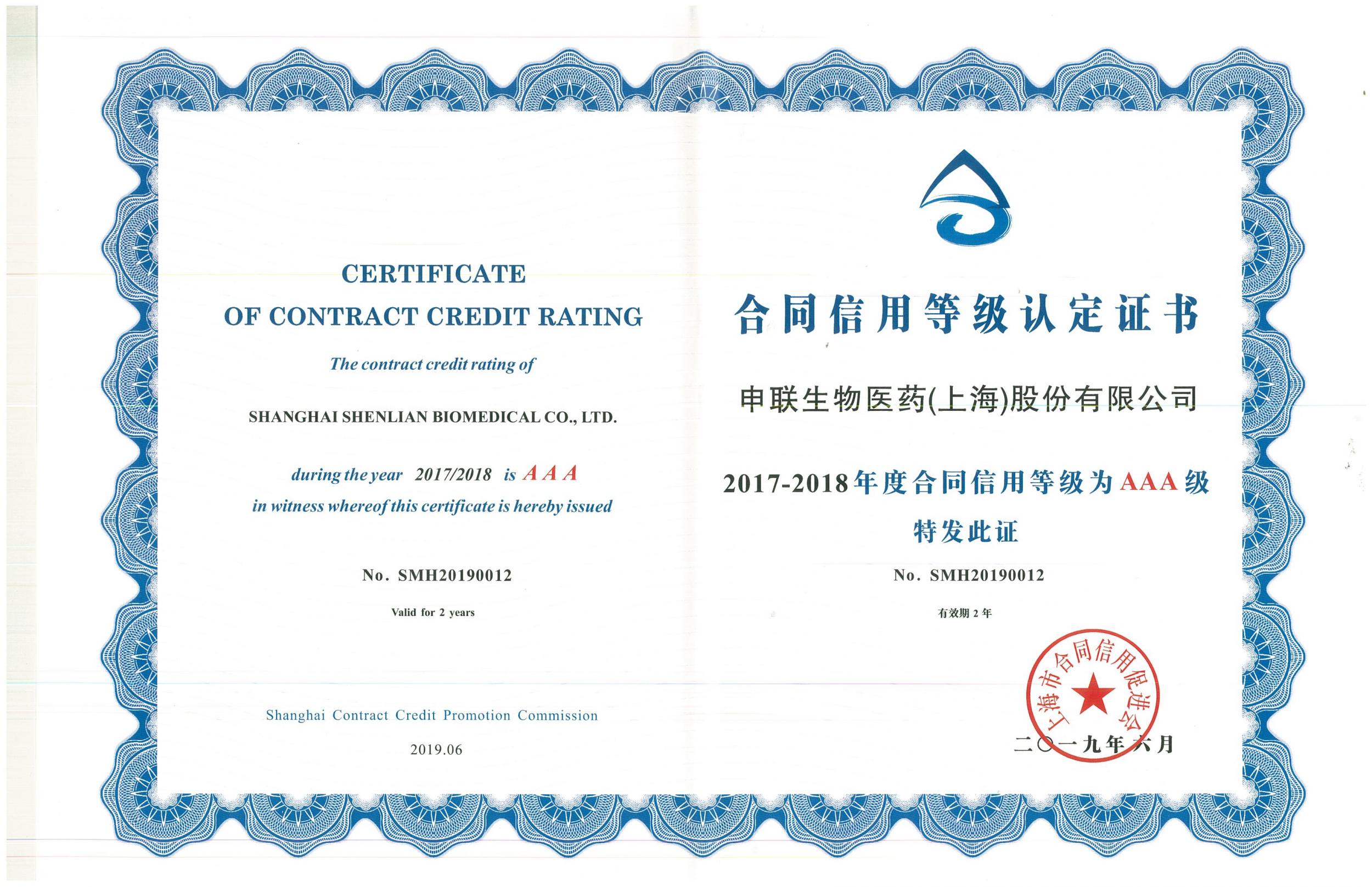近日,经上海市合同信用促进会的综合考证及专家评审委员会审核,J9国际集团生物被评为“2017-2018年度重合同守信用企业”、“2017-2018年度合同信用等级AAA级等级认定”,并颁发奖牌及证书。这是公司开拓市场、强化管理、规范运作获得有关主管部门的制度化认可的重要标志。